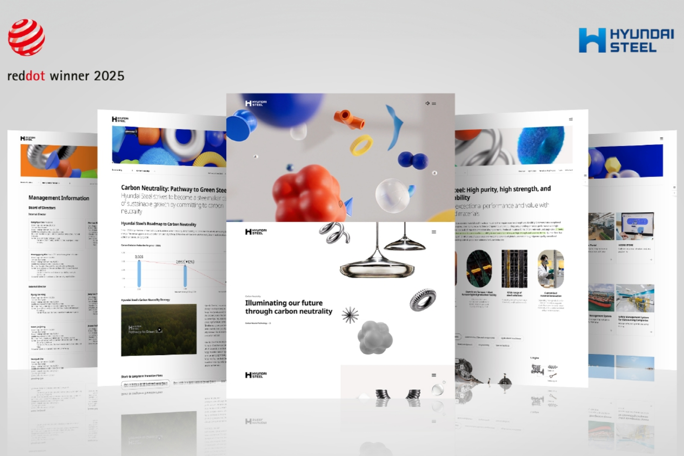 현대제철이 '2025 레드닷 디자인 어워드(2025 Red Dot Design Award)'에 첫 출품한 홈페이지 디자인이 본상을 수상했다.