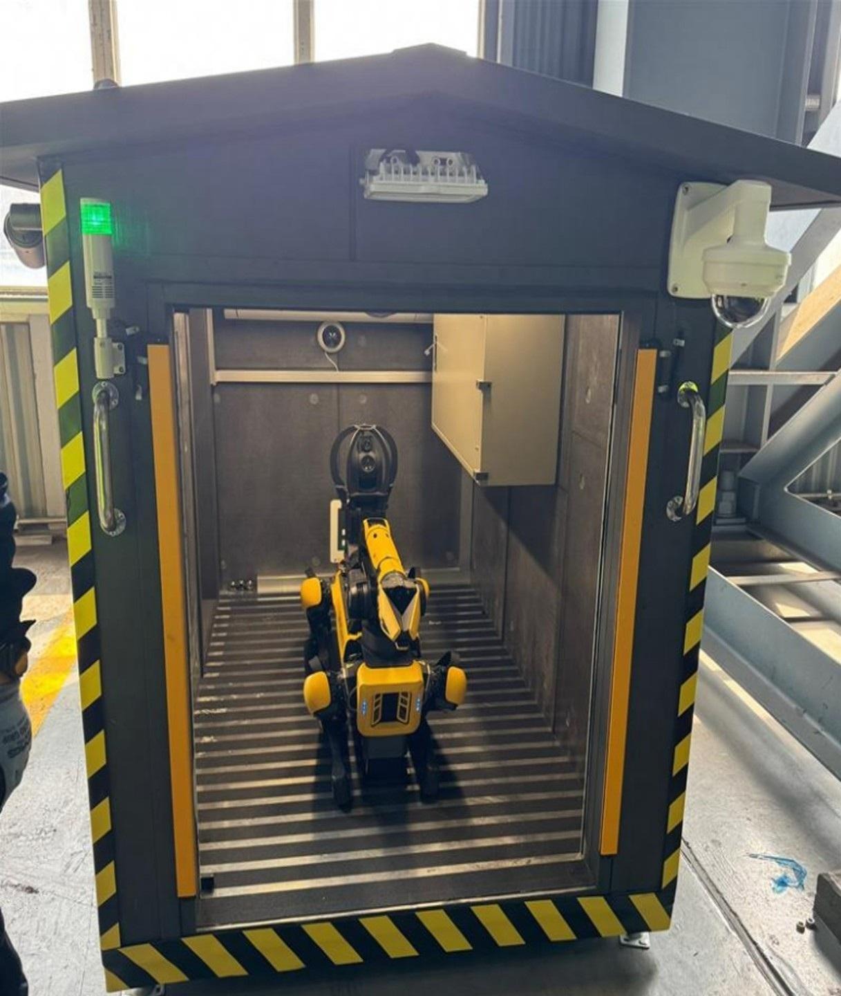 SPOT은 한 번 충전하면 약 50분 정도 움직일 수 있어요. 그래서 공장에는 SPOT을 위한 전용 충전소를 설치했어요. 이걸 ‘SPOT 하우스’라고 불러요. 로봇이 배터리가 부족하면 스스로 하우스로 돌아가 충전하고, 다시 나가서 안전 순찰을 이어가요. 이렇게 충전소를 통해 점검 구역을 더 넓힐 수 있어요.
