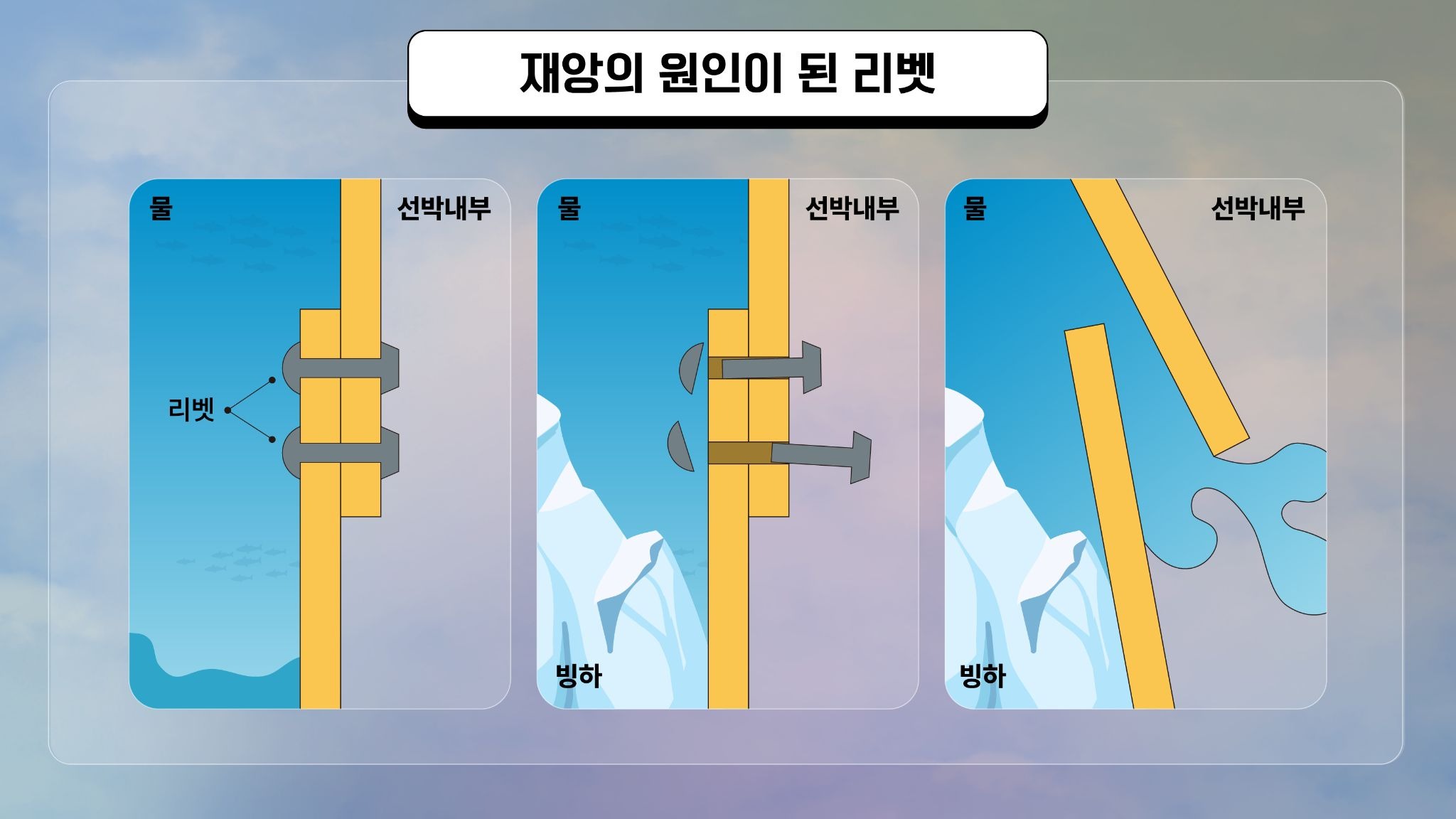 강철판이 칼로 벤 듯 찢어졌다면 범인은 '빙산'입니다. 하지만 이음새가 터지며 벌어졌다면? 범인은 철판을 붙잡고 있던 '접합부(리벳)'와 충격을 흡수하지 못한 '재료(강철)'가 됩니다. 왜 철판은 찢어지는 대신 접합부가 터져 나갔을까요?