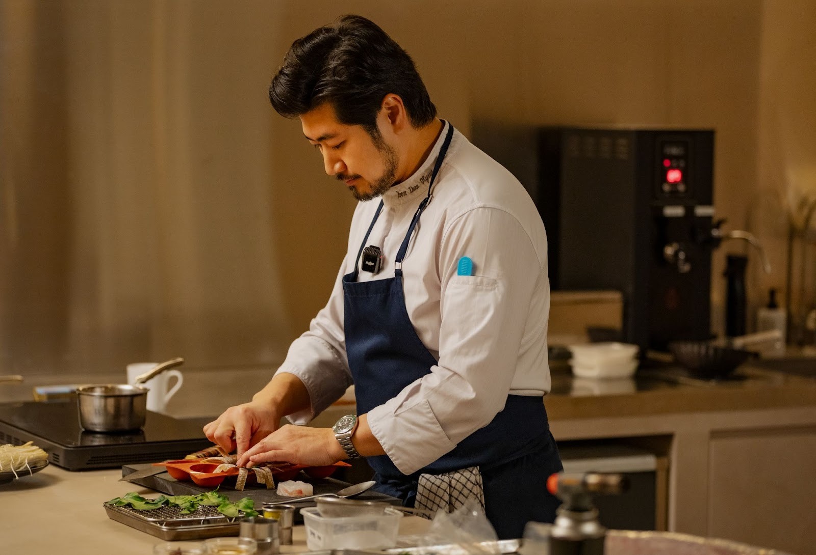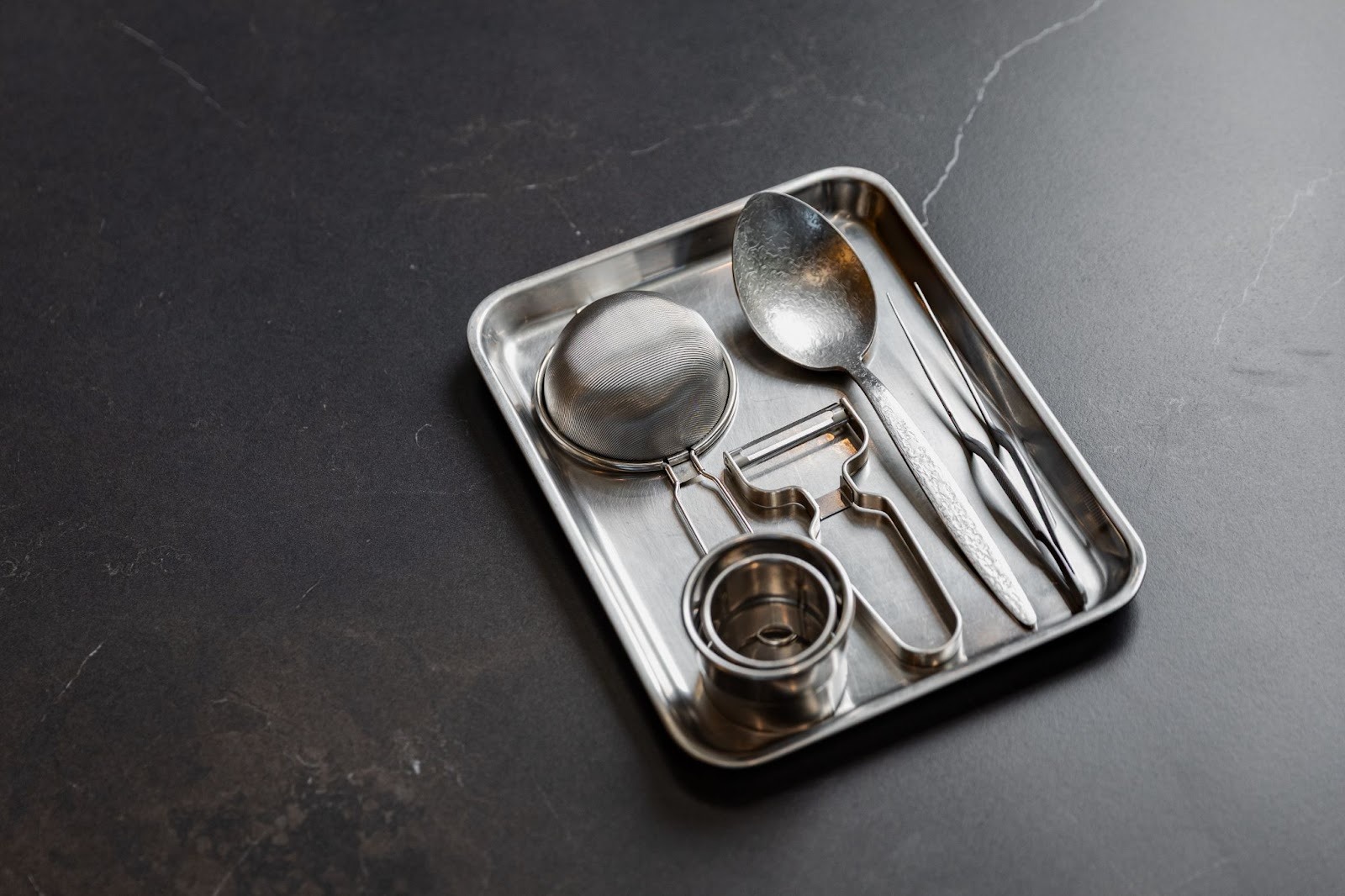 윤대현 셰프의 핀셋, 고운 체 등 철제 조리 도구