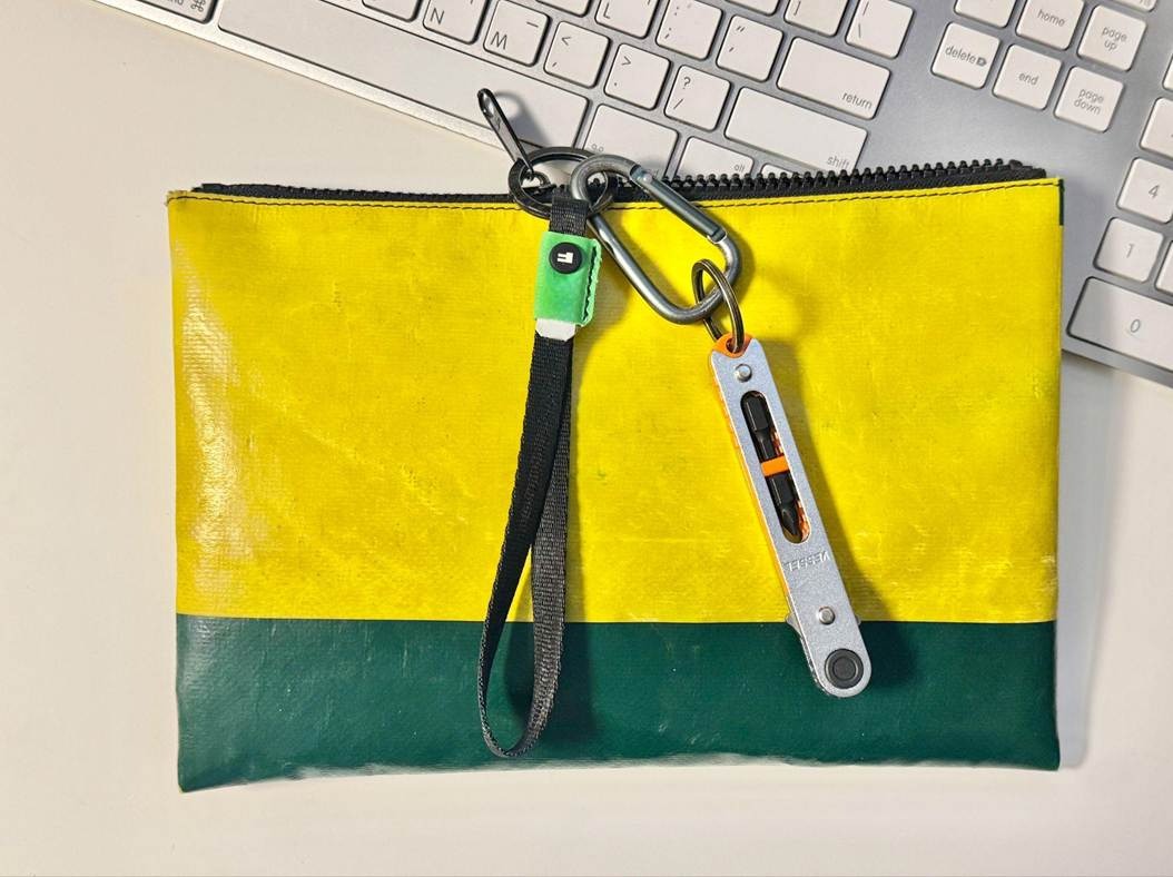 다양한 나사 헤드를 끼워 쓸 수 있는 휴대용 래칫 드라이버. 캐러비너로 가방에 달아두면 밖에서도 든든하다.