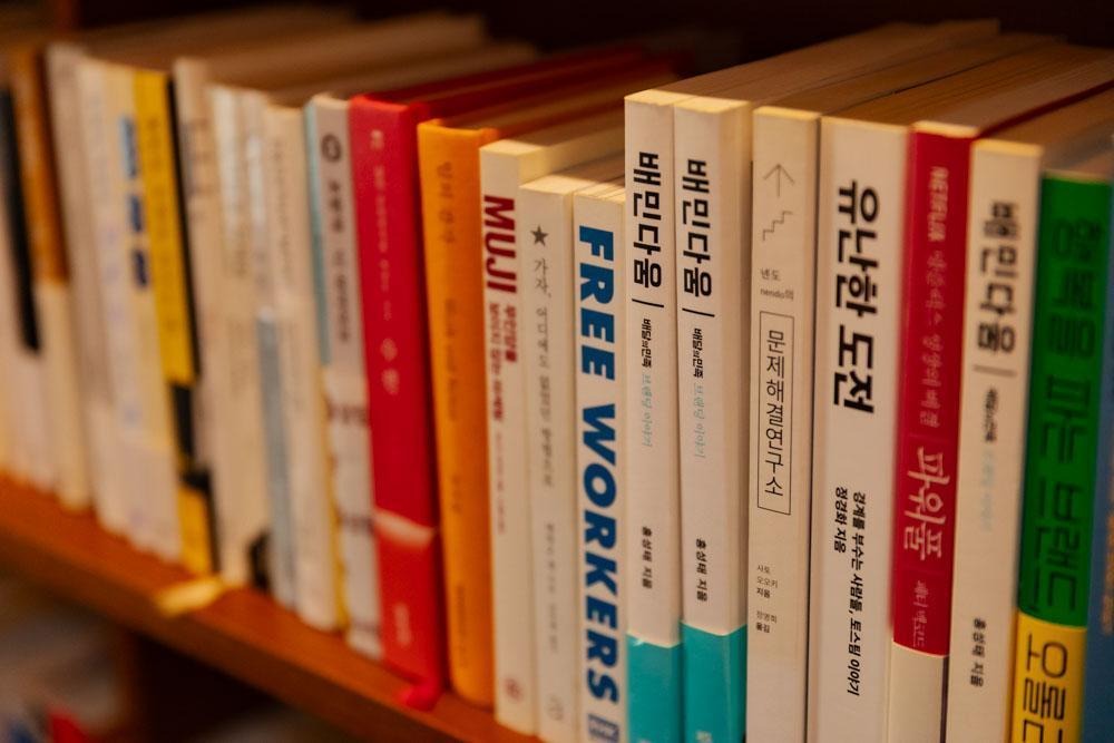 마케팅 관련 도서가 정리된 책장