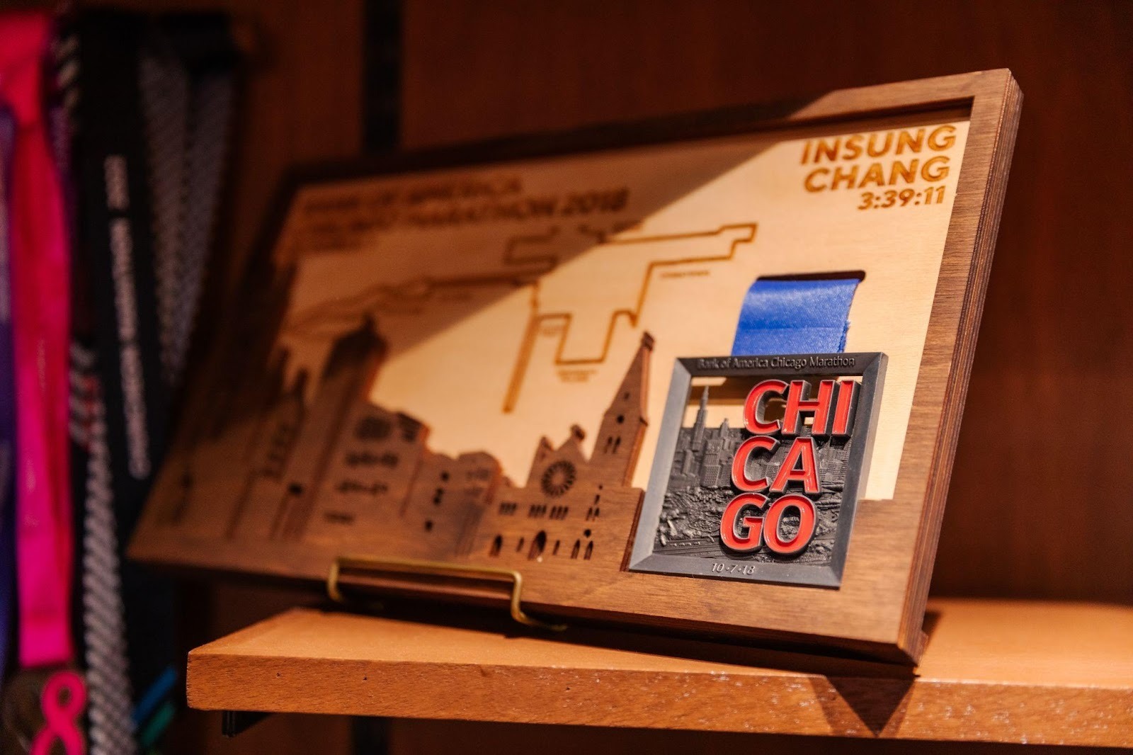 뱅크 오브 아메리카 시카고 마라톤 완주 기념 메달과 액자